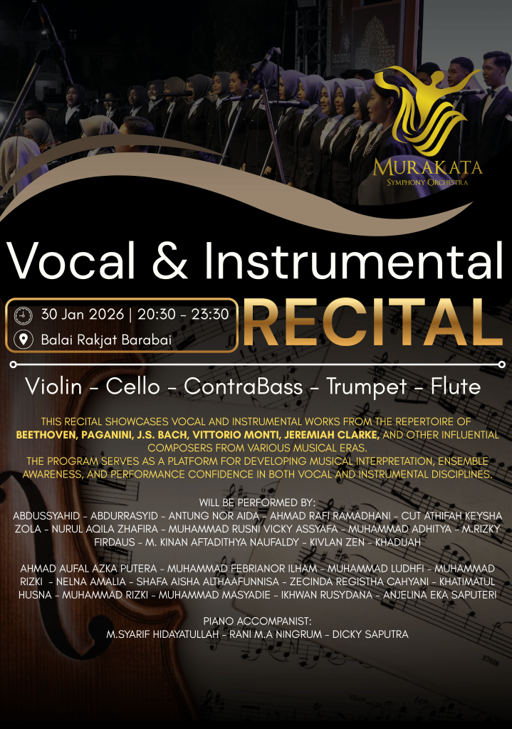 This recital showcases vocal and instrumental works from the repertoire of Beethoven, Paganini, J.S. Bach, Vittorio Monti, Jeremiah Clarke, and other influential composers from various musical eras. The program serves as a platform for developing musical interpretation, ensemble awareness, and performance confidence in both vocal and instrumental disciplines.